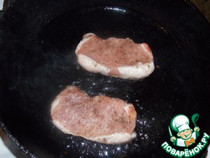 Затем на сильно разогретой сковородке обжариваем примерно по 2 минуты с каждой стороны.. До золотистой корочки.. Нам нужен только красивый цвет, а не прожаренное мясо.
