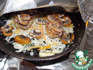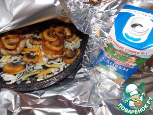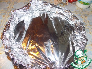Закрываем фольгой сковородку и ставим в духовку минут на 20-25 при температуре 180 гр..
