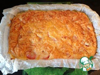 Застилаем пергаментом или смазываем маслом форму, наливаем большую половину теста.
