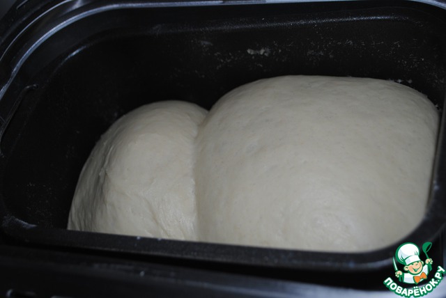 В теплое молоко высыпаем дрожжи и даем постоять 5-10 мин, до растворения дрожжей. Сыворотку подогреваем, смешиваем с молоком. Дальше загружаем все ингридиенты в ХП, согласно вашей инструкции. Выставляем программу замес + подъем. Через полтора часа тесто выглядело так.