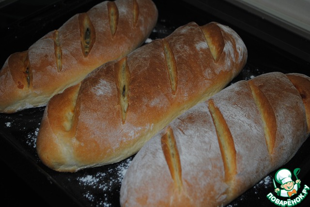 Батоны подошли. Делаем, аккуратненько, надрезы острым ножом.
