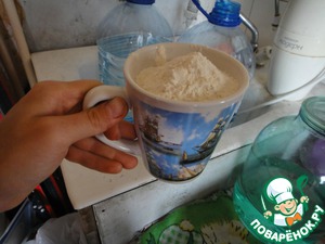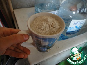 • 2. Тесто готовится совсем просто, в кастрюлю высыпаем стакан (ну, у меня была кружка) ржаной муки.