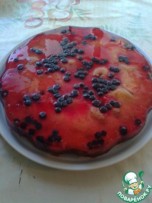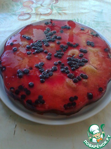Бисквит как раз должен быть готов. Чтобы его было легче достать, не поленитесь опустить форму на пару минут в холодную воду, НО чтобы вода не попала на корж. Моем форму и выливаем в неё желе. Насыпаем ягоды и сверху кладем корж. Ставим в холодильник.