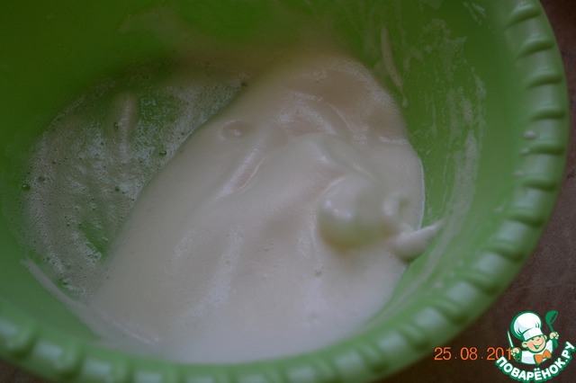 • 4. А мы пока можем взбить заранее отложенные белки в крепкую пену.