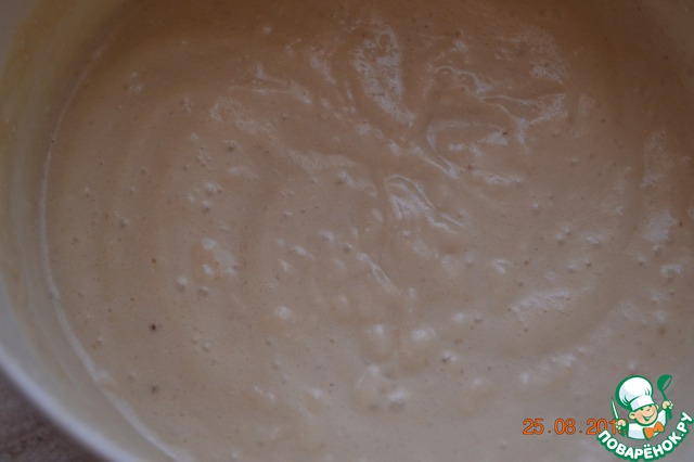 • 6. Выливаем в смазанную небольшим количеством растительного масла форму и ставим в предварительно разогретую духовку до 220 градусов на 30 мин.
