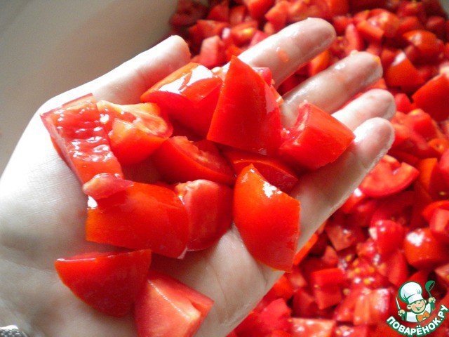 Помидоры режем довольно крупными кусочками. Вот такими.