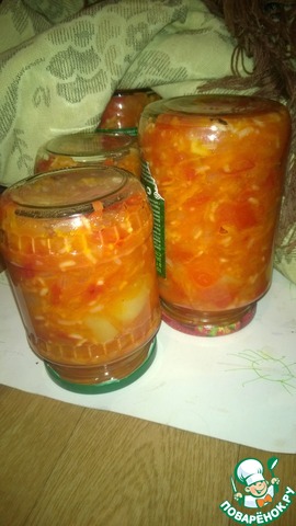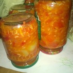 Очень вкусный салатик. Уксус совсем не используется, но баночки стоят великолепно! Не взорвалась ни одна. За рецепт спасибо моей свекрове Зинаиде Ефимовне.