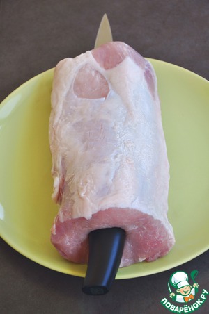 Сделать по центру куска сквозной прорез по всей длине куска мяса.
