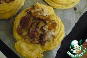 Когда Вы будите делать корзиночки из картофеля, старайтесь не обрывать его до самого конца. Иначе после выпекания Вы получите это.