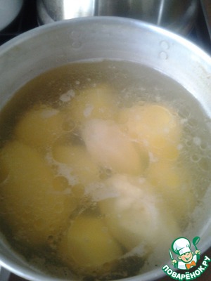 • Нарезать картофель кружками, смешать майонез, сыр с картофелем. Поперчить, посолить.