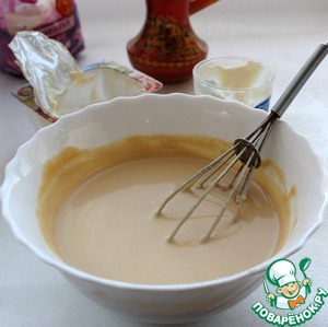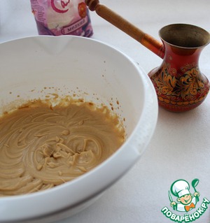 Смешать мягкое сливочное масло с коричневым сахаром, охлажденным кофе, хорошо размешать.