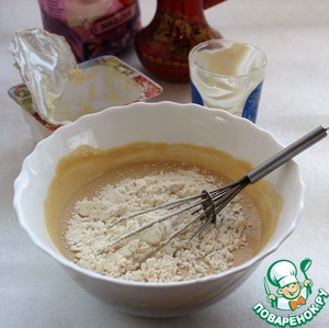• Добавить просеянную муку с разрыхлителем, замесить тесто. Получается мягкое, эластичное, приятное для работы тесто.