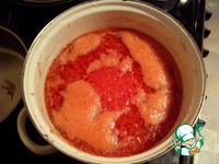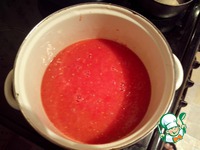 Заливаем кастрюлю до 4 л отметки томатом, 1/4 выкипит. |