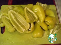 Пока кипит, готовим 8-10 шт. болгарского перца. Очистить от семян!!! |