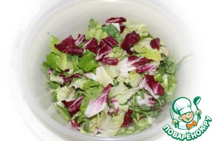 - Листья салата / Салат (смесь, по вкусу, у меня обычный листовой салат, романо и радиччио) — 2 горст.