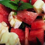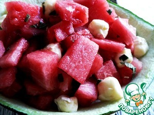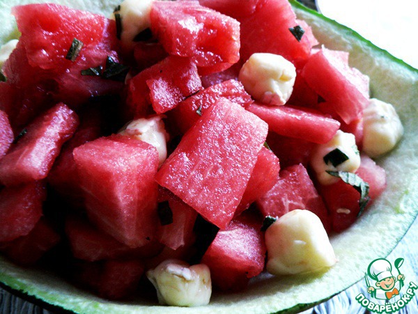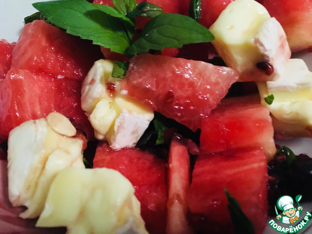 Салат из арбуза и бри с малиновым сиропом