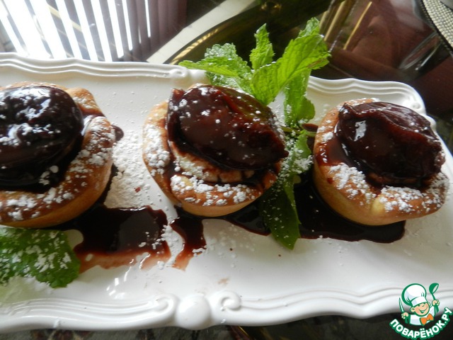 Наполняю выпечку черникой, перемешанной с сиропом. Украшаю листочками свежей мяты. Приятного Вам аппетита!
