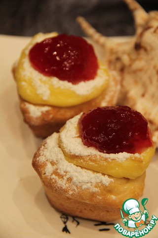 Затем в каждую корзиночку из теста добавляю примерно по 1-1,5 столовой ложке крема. Выпекаю корзиночки без расстойки в разогретой до 190 градусов духовке примерно 12-15 минут. Сильно запекать их не нужно!