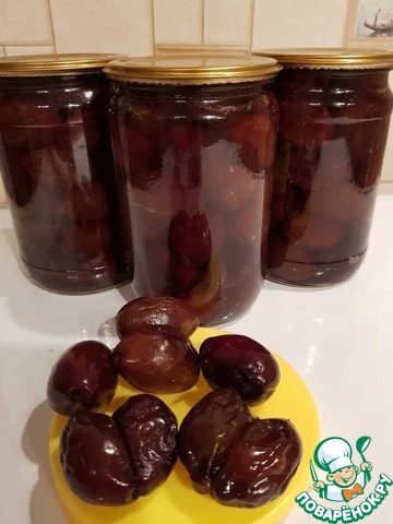 [+4]1. Вяленые сливы с чесноком. 2-Й -- Сливы в сиропе с чесноком. Очень необычно и вкусно. Все мои друзья и родственники просят рецепты. И вот беру себе Ваш рецепт (уже 3-й). Он отличается от тех двух. Заинтересовал. Теперь попробую и этот рецепт. БЛОГОДАРЮ! Вот баночка слив с чесноком в сиропе. Извините, как получилось" перетянуть" баночку, а вот крупное фото ну никак не получается перенести - не умею...