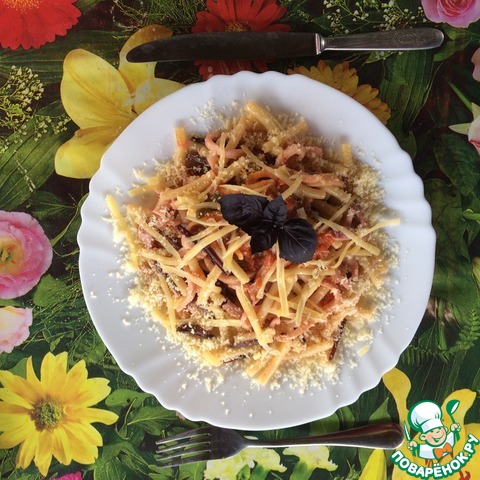 Разложите по тарелкам, полейте томатным соусом и потрите немного сыра! Приятного аппетита!