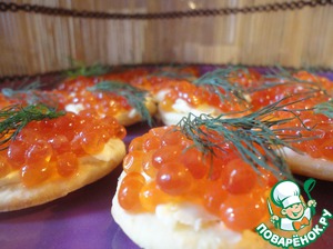 Рецепт «Канапе с красной икрой на домашних сырных крекерах»: