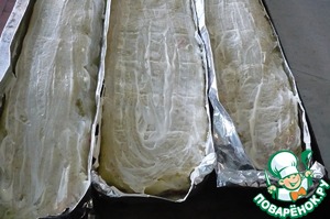 Фольгу смазать маслом. Переложить на нее наш рулет.