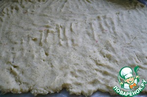 На пленке разравниваем картофельную массу. Когда будите это делать, то смачивайте руки водой. Легче будет ровнять.