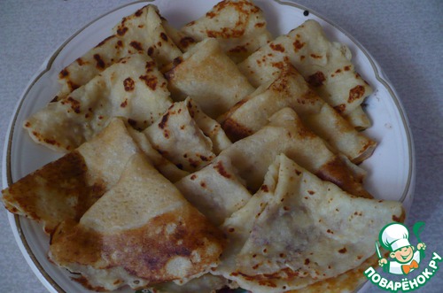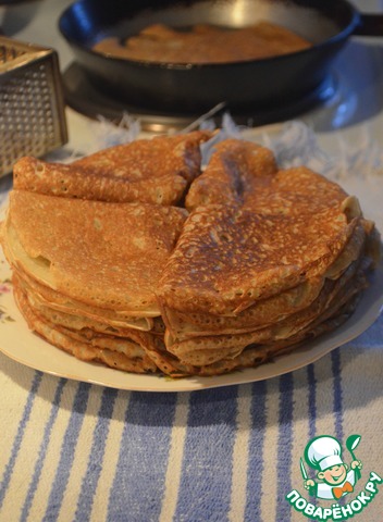 Сегодня у меня выходной и дома нет никого, что случается очень редко. Поэтому я с чистой совестью залезла в инет, нашла пару рецептов и рванула на кухню. Сначала я сделала эти блины, и мне они понравились. Представляю их на ваш суд.