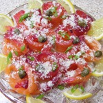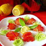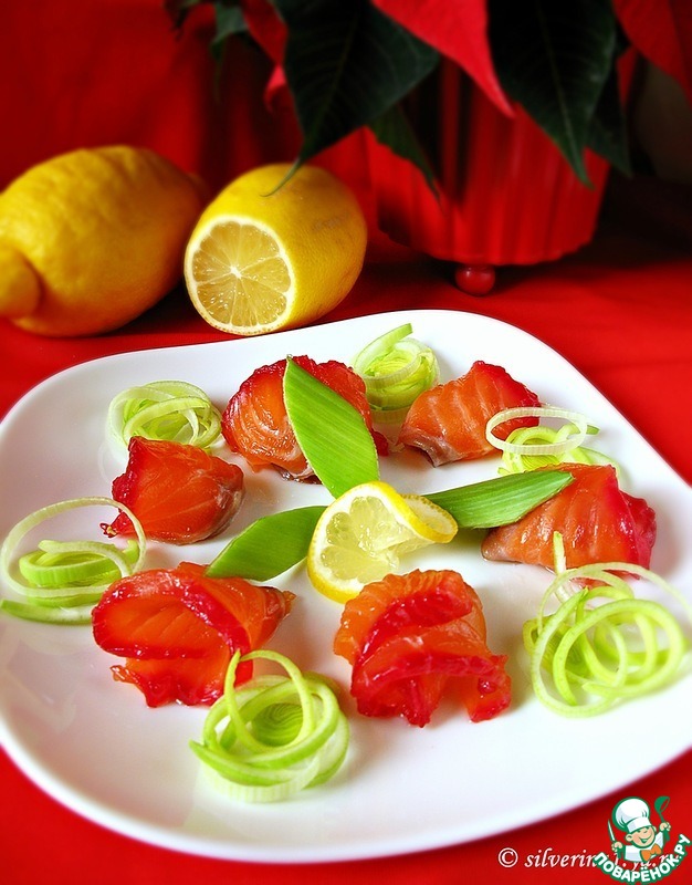 Я на форуме пожаловалась, что филе мне привезли неудачное, с порезом, в итоге при нарезке приличных кусочков не получилось, пришлось скрутить, чтобы приличнее смотрелось... Но главное, что вкусно! )) Я слабосоленого лосося обожаю, и часто солю, так что с удовольствием попробовала твой рецепт! )) Еще раз спасибо!