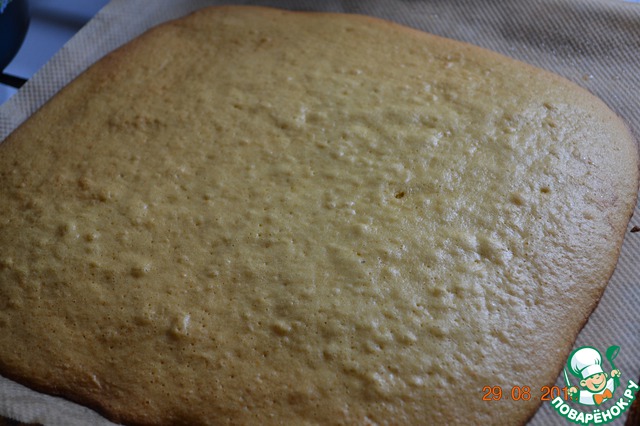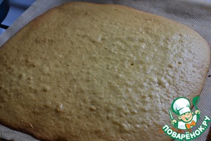 Выпекать корж при температуре 200-220 градусов в течение 15 минут.