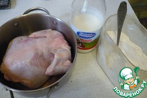 Теперь залить нашу курочку молоком и оставляем на 30 мин.