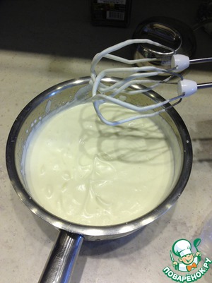 Смешать сливки с творогом, снова взбить. Убрать крем в холодильник минут на 20.