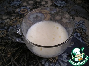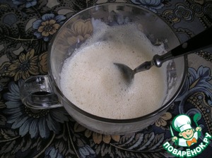 И примерно 1/2 чашки горячей смеси вмешать во взбитое яйцо. Получится вот такая пенная масса.
