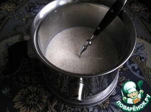 Тщательно мешая. довожу смесь до первых признаков кипения, смесь должна загустеть и очень приятно запахнуть. Когда смесь почти закипит, снять ее с огня. -