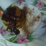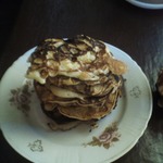 Из такого количества теста получается примерно 6 средних панкейков (один я в процессе приготовления умяла :) ), то есть 2 порции. Традиционно панкейки подаются на завтрак с кленовым сиропом, но у нас он довольно редко встречается, поэтому можно взять варенье, мед, сгущенку, сметану - в общем, все, что вы любите! Приятного аппетита :)