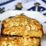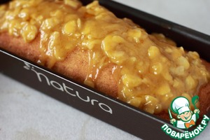 Через полчаса достать кекс из духовки и полить заливкой. В след. раз я не буду смешивать миндальные пластины с заливкой, а посыплю их сверху. Так будет симпатичнее и миндаль лучше подрумянится. Поставить кекс в духовку еще на 5 минут.