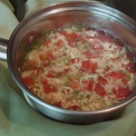 Бульон (можно рыбный или в крайнем случае просто вода) закипятить, добавить перец и соевый соус - в принципе, соль может и не понадобиться, соевый соус даёт "солёность". Добавить помидоры и сново закипятить.