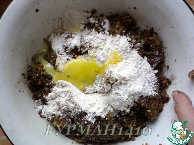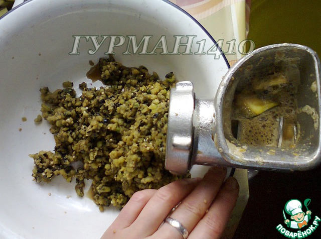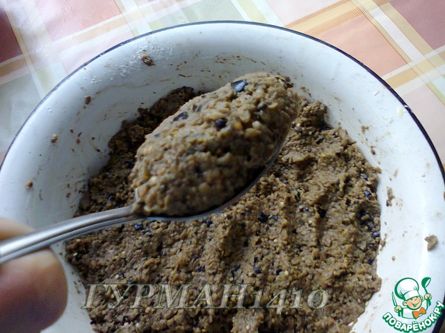 • 9. Берем столовую ложку и набираем в нее фарш из баклажанов. Можно сразу ложкой выкладывать на сковороду, придавая форму плоских котлет, а можно руками формировать плоские котлетки. ( к рукам фарш не пристает).