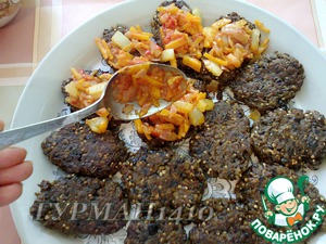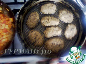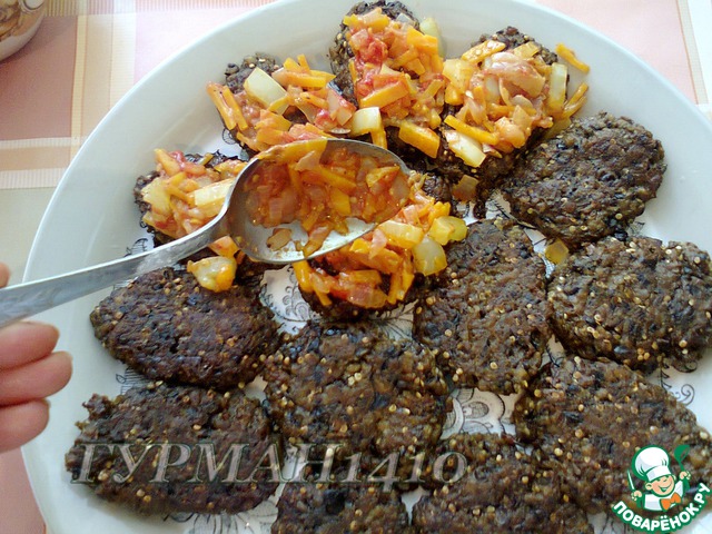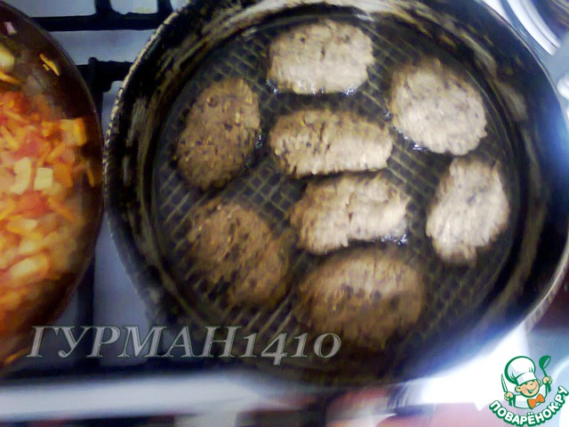 • 13. На каждую котлету выкладываем ложкой подливку.