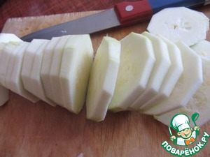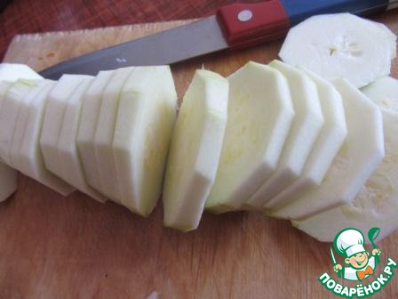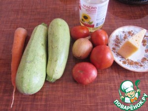 Кабачки и помидоры режем колечками около 5 мм толщиной. Сыр трем на крупной терке.