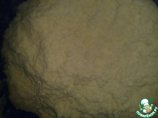 Замесите тесто, но не подмешивайте муку! Тесто будет очень прилипать к рукам, но это хорошо, в противном случае тесто в пироге будет сухим! Затем поставьте тесто в холодильник (не нужно миску ничем накрывать, разве что вы не планируете печь сразу, тогда накройте обычной крышкой).