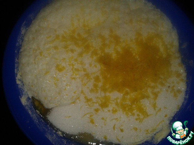 Затем легко руками перетереть маргарин с мукой в мелкую крошку. И в отдельную тарелочку натереть цедру из лимона.