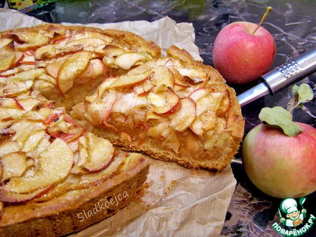 На тесто выложить яблоки. И поставить в разогретую духовку до 180 градусов примерно на час. Раньше вытаскивать не советую, чтобы пропеклись яблоки.