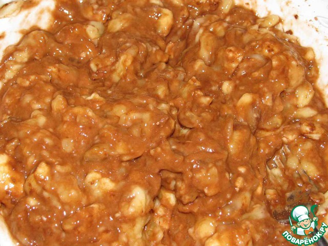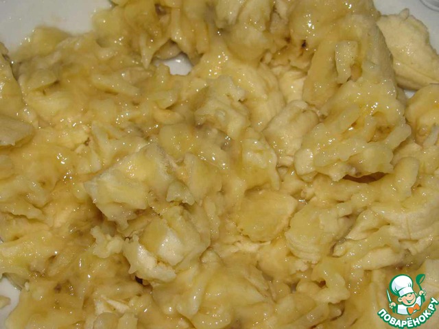 Протереть сливовую массу через сито или блендером. Добавить банановое пюре и рубленные орехи.
