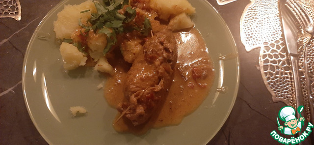 Готовые рулады очень хороши с картошкой или капустой. Соус обалденный, я его готова была ложкой есть :))