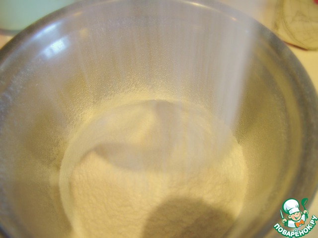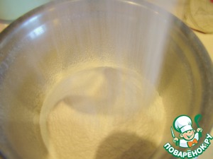 Отдельно смешать муку (просеять), разрыхлитель и соль.