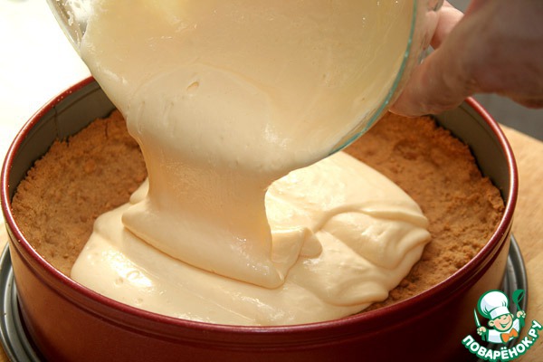 Вынимаем нашу форму с основой из духовки и вливаем нашу начинку.