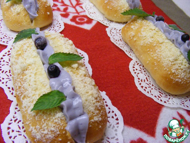 Рецепт «Булочки со штрейзелем и черничным кремом»: