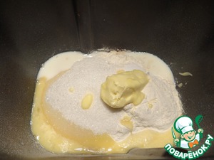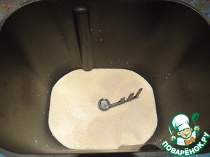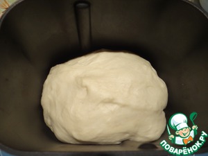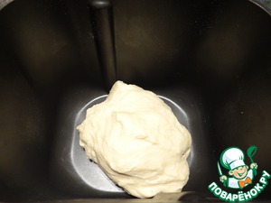 Помещаю ведерко в хлебопечку, включаю режим замеса теста. Даю тесту увеличиться в объеме в 2 раза в теплом месте.