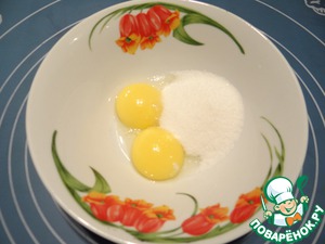 Пока молоко нагревается, соединяю в миске желтки и сахар,